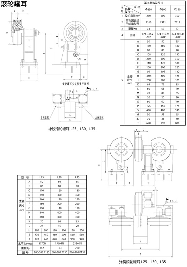 雙輪液壓滾輪罐耳是參考多年來各礦井使用滾輪罐耳的形式,廣泛吸取用戶的使用意見改進而成??筛鶕脩舻氖褂脳l件和要求,可采用橡膠緩沖、彈簧緩沖、碟簧緩沖、液壓緩沖、復合緩沖。其使用壽命長、安全可靠性高、維護方便等特點。